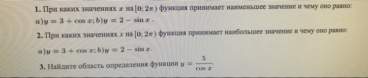 Минимум косинуса равен минус 1 в точке π, y при этом равен 2