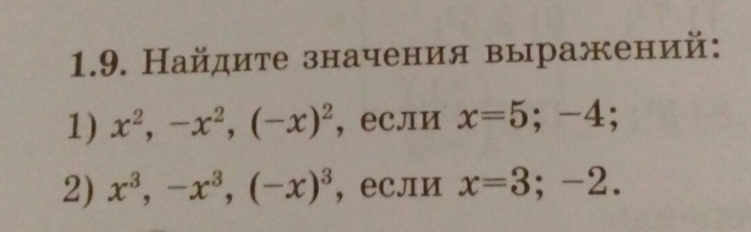 найдите значения выражений: 1) х², -х², (-х)², если х=5; -4