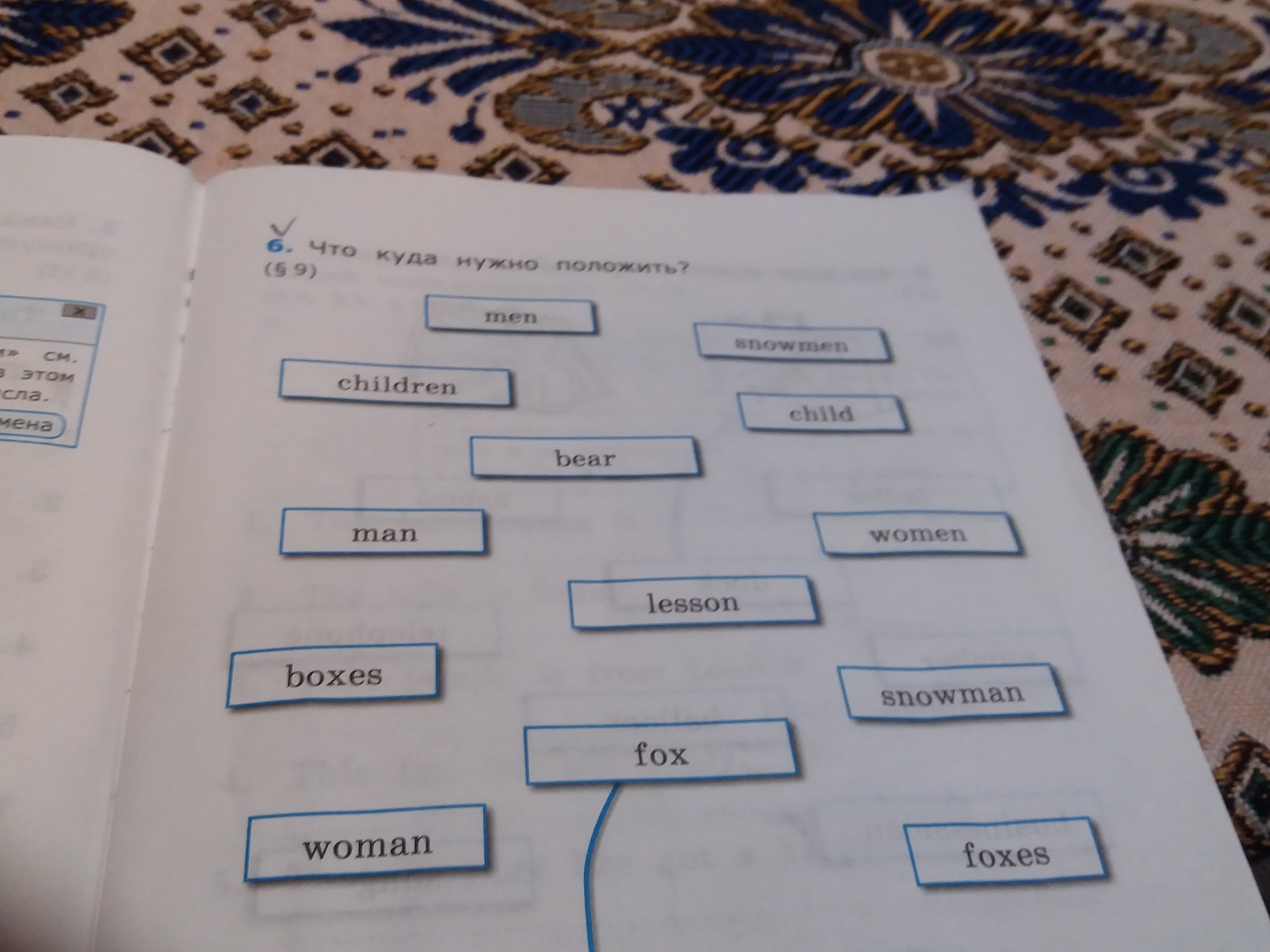 Woman - women, Children-child,snowman- snowmen, man - men ,box - boxes , fox- foxes)))