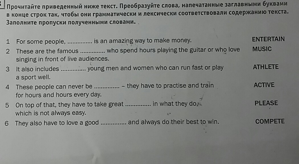 Прочитайте приведенный ниже текст. Преобразует слова, напечатанные заглавными буквами в коне строк так , чтобы они грамматически соответсвовали содержанию текста.