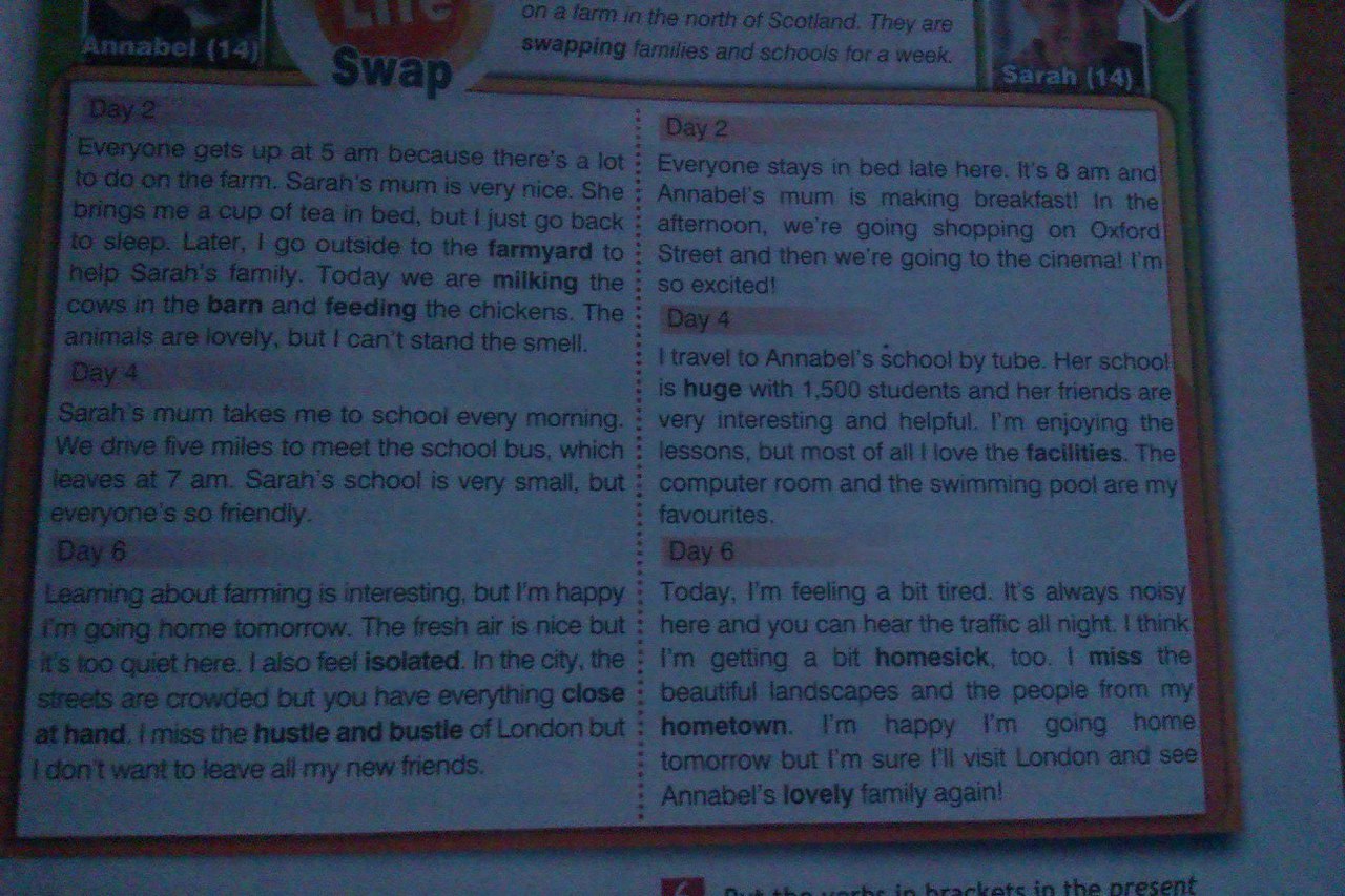 День 2. В 5:00 все встают, потому что есть много дел на ферме. Мама Сары очень хорошая. Она приносит мне чашку чая в постель, но потом идет спать. Позже, я выхожу на улицу к фермерскому двору, чтобы помочь семье Сары. Сегодня мы доим коров в сарае и кормим цыплят. Животные прекрасны, но я не могу выдержать запах.