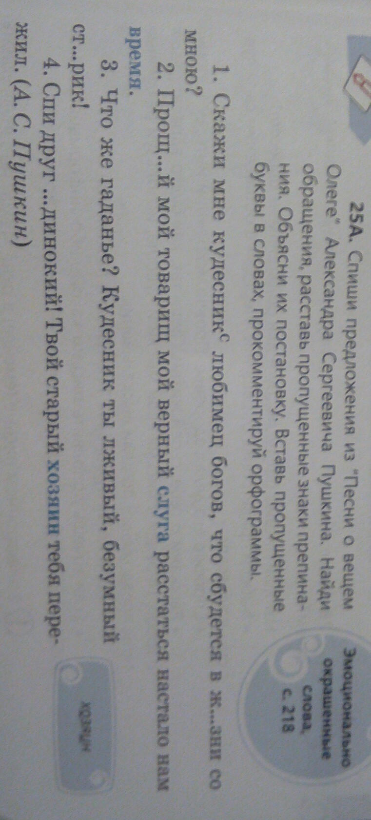 спиши предложения из Песни о вещем Олеге Александра Сергеевича Пушкина.Найди обращения,раставь пропущенные знаки