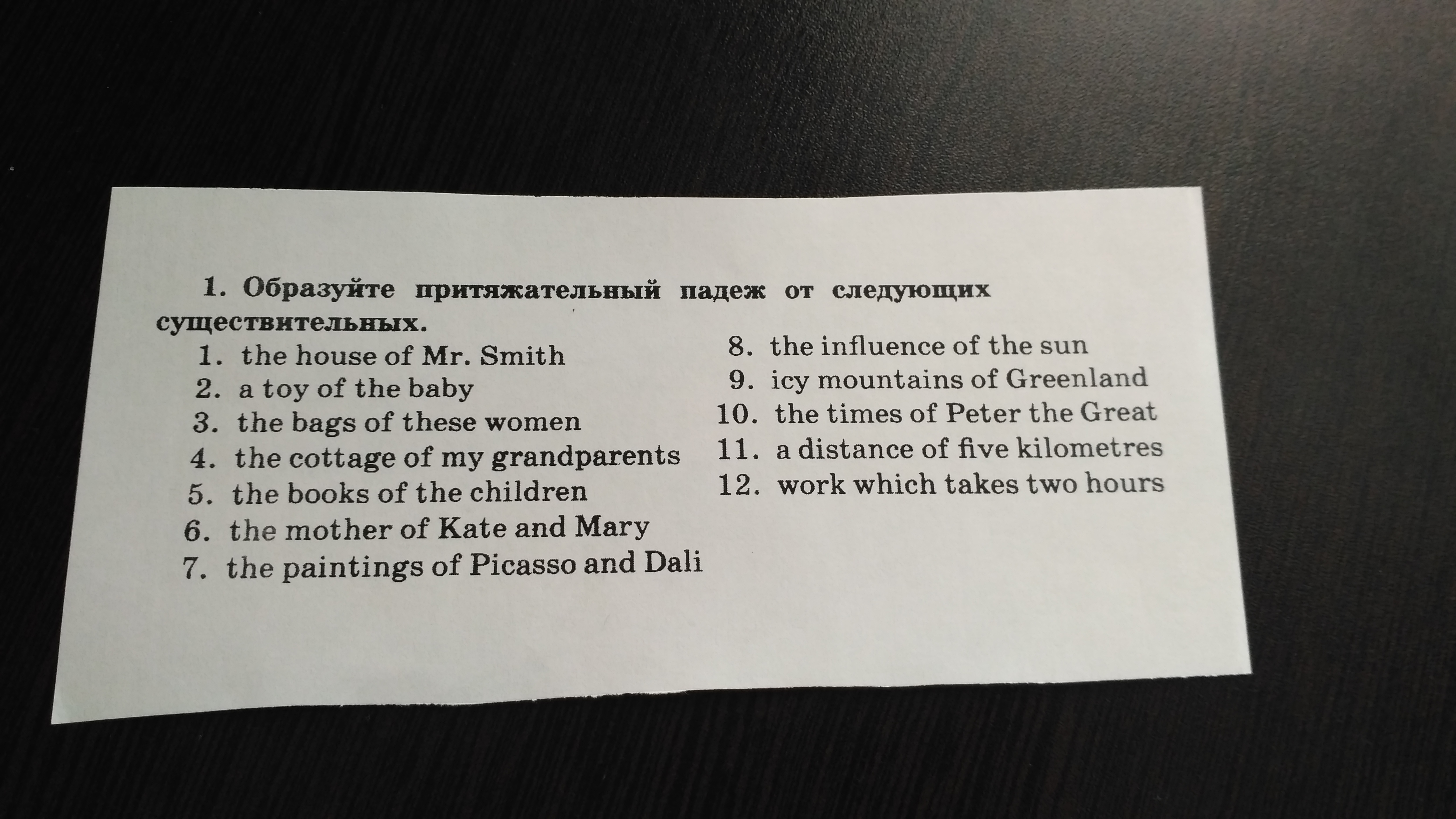 1.Образуйте притяжательный падеж от следующих существительных(Английский).