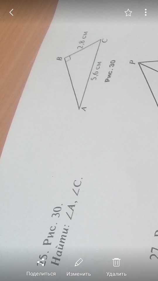 Sin<A = BC : AC = 2,8 : 5,6 = 1/2 значит <A = 30°