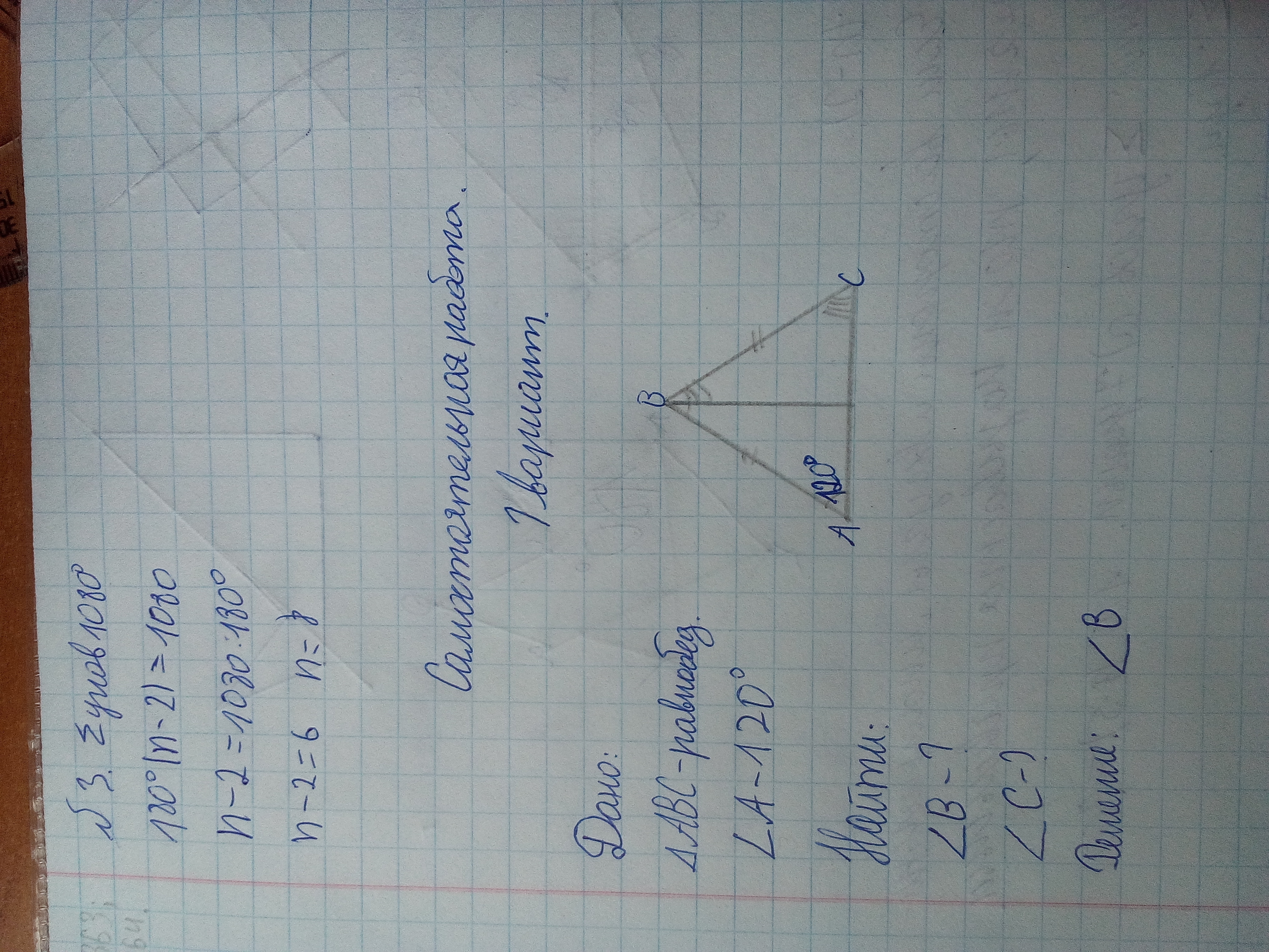 Сумма углов в треугольнике равна 180°, если один из углов 120°, то сумма двух других равна 180 - 120 = 60°.