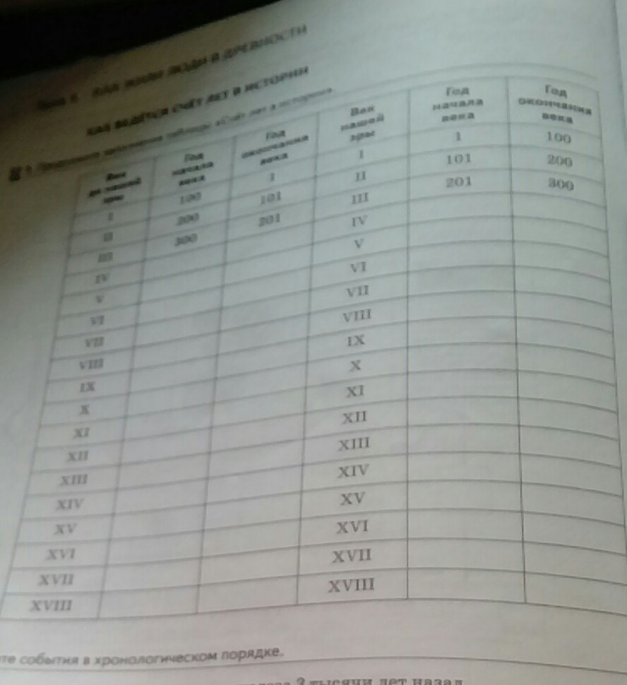 продолжите заполнение таблицы Счет лет в истории
