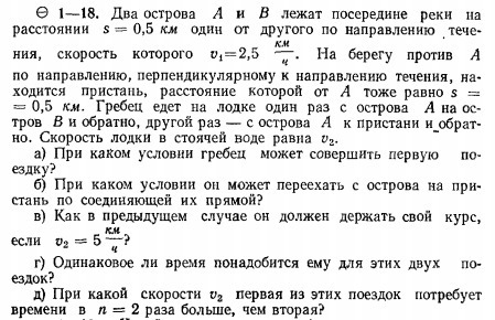2) чтобы вектор скорости был направлен строго перпендикулярно течению, необходимо воспользоваться правилом сложения векторов. Так как не задано ни скорости, ни угла, под которым должен быть направлен вектор скорости лодки, то расчёт будет сделан на примере: результирующая скорость лодки пусть равна 0,5. Тогда можно по правилу параллелограмма рассчитать вектор скорости лодки и угол. Из прямоугольного тр-ка по т. Пифагора искомый вектор равен √6,5≈2,5495 км/ч. А угол α=arctg(0.5/2.5)=arctg(1/5).