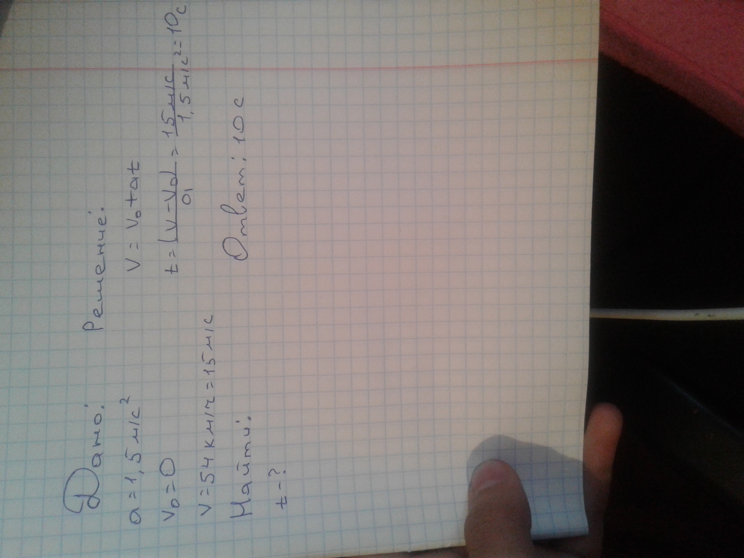 автобус трогаясь с места движется с постоянным ускорением 1,5 м/с^2 .Через какое время он приобретает скорость 54 км/ ч ?