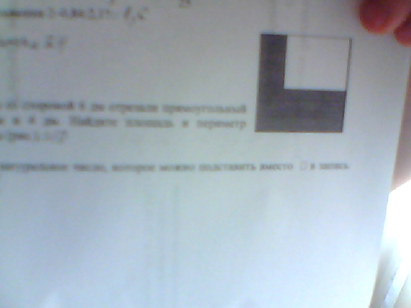 От квадратной пластины со стороной 6 дм отрезали прямоугольный кусок со сторонами 3 дм и 4 дм. Найдите площадь и периметр оставшейся части пластины