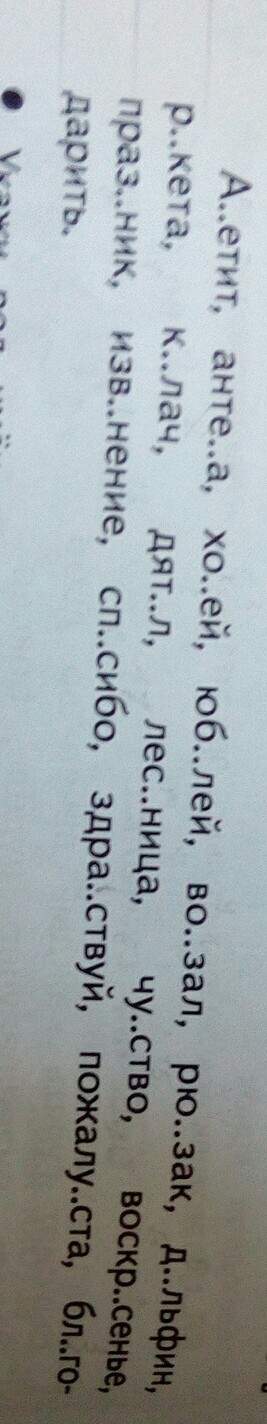 антенна, аппетит, благодарить, вокзал, воскресенье, дарить, дельфин ,дятел, здравствуй, извинение, калач, лестница, праздник, пожалуйста, ракета, рюкзак, спасибо, хоккей, чуствовать, юбилей