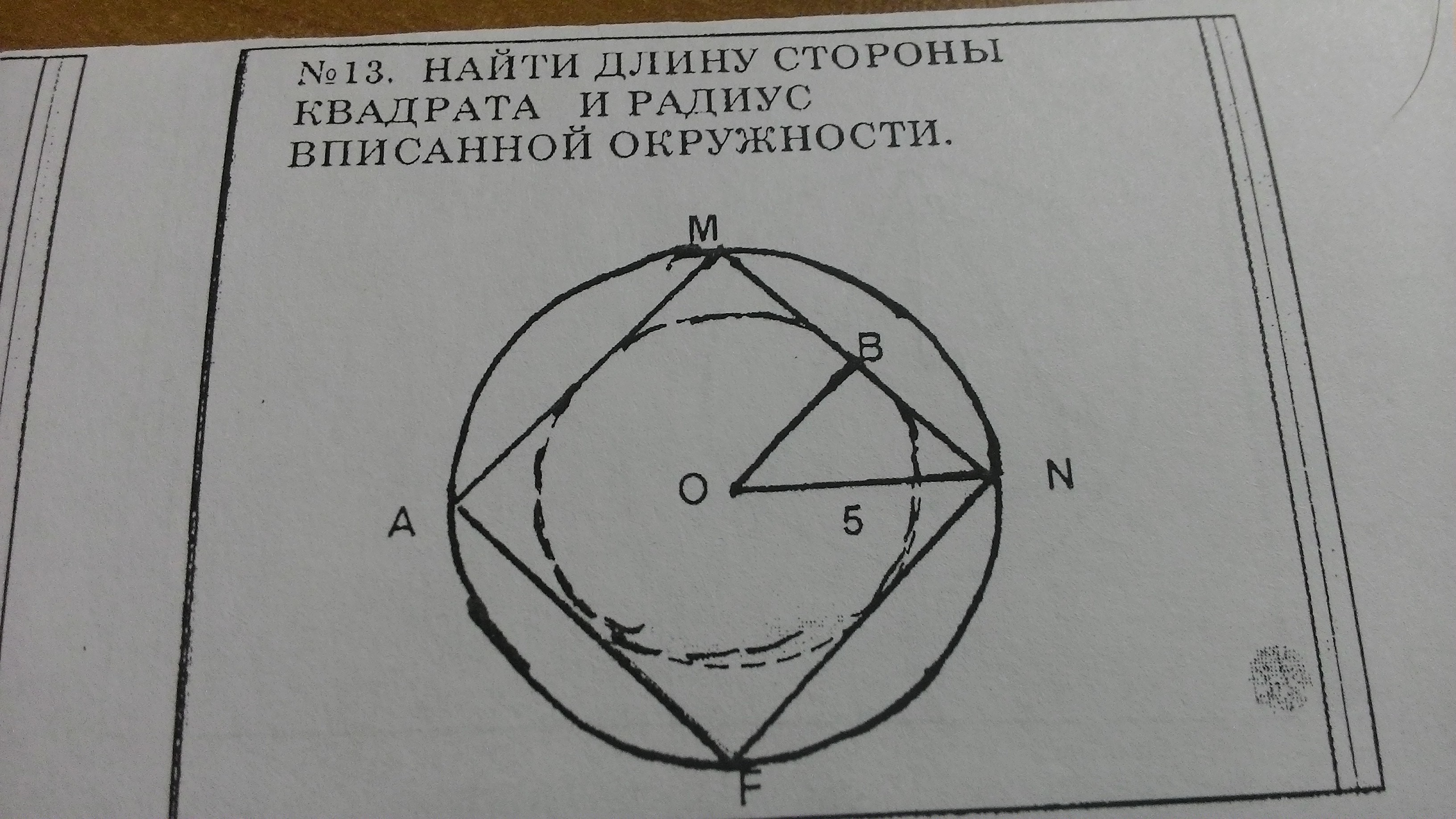 Если радиус описанной около квадрата окружности ON = 5, то так как
