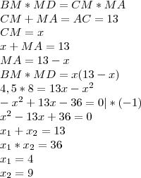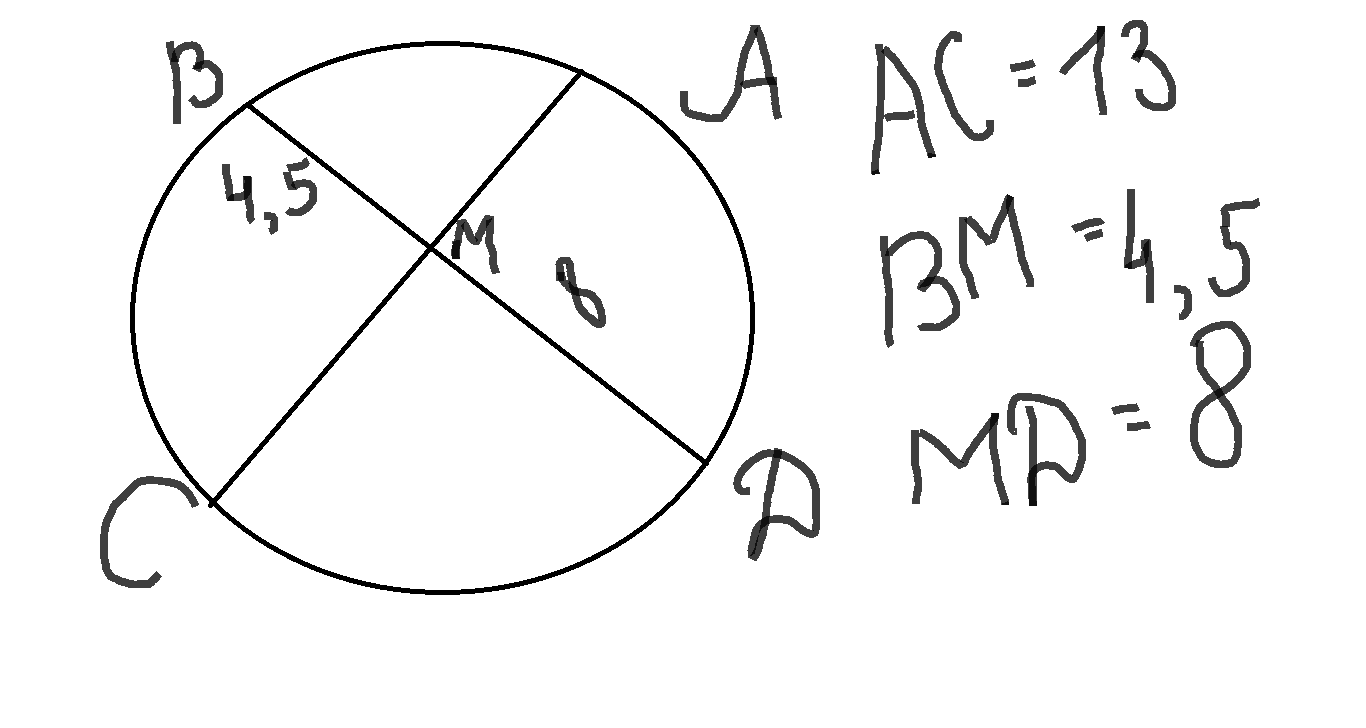 Дана окружность AC=13 ; BM= 4,5 ; MD=8 ;