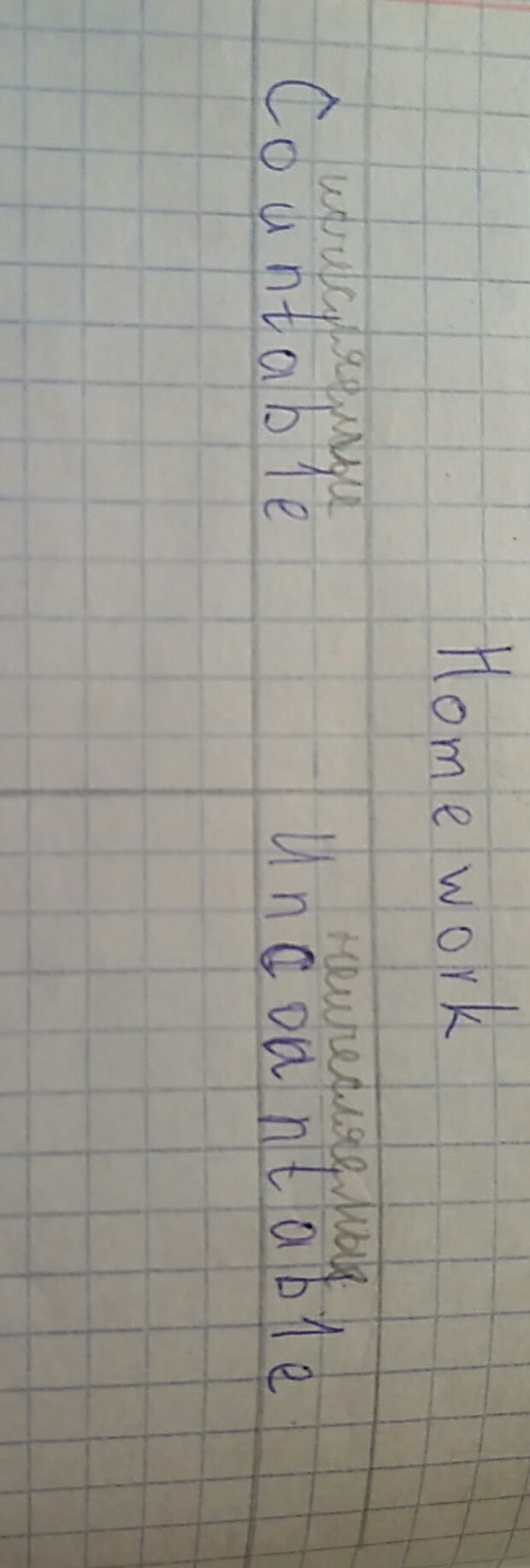Countable: Cats, dogs, books, pupils, parrots, spoons, tables, diaries, goats, sheeps, ships, doctors, houses, friends, wolfs, rabits, fingers, heads, hands, lines.