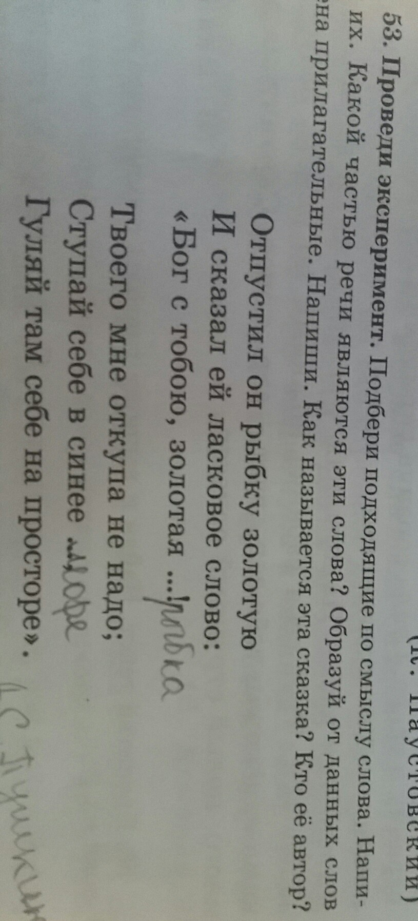 проведи эксперимент. Подбери подходящие по смыслу слова. Напиши их. Какой частью речи являются эти слова ? Образуй от данных слов имена прилогательные.