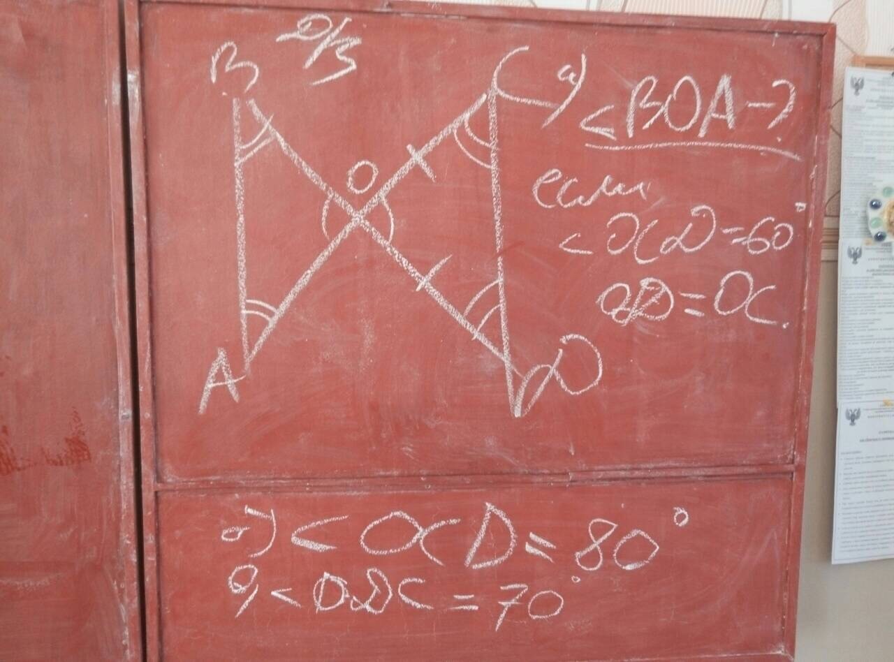 угол ОСД=60° => ∆ОСД - равност => углы равны по 60° => угол СОД=60, СОД=ВОА - верт-е => угол ВОА=60°