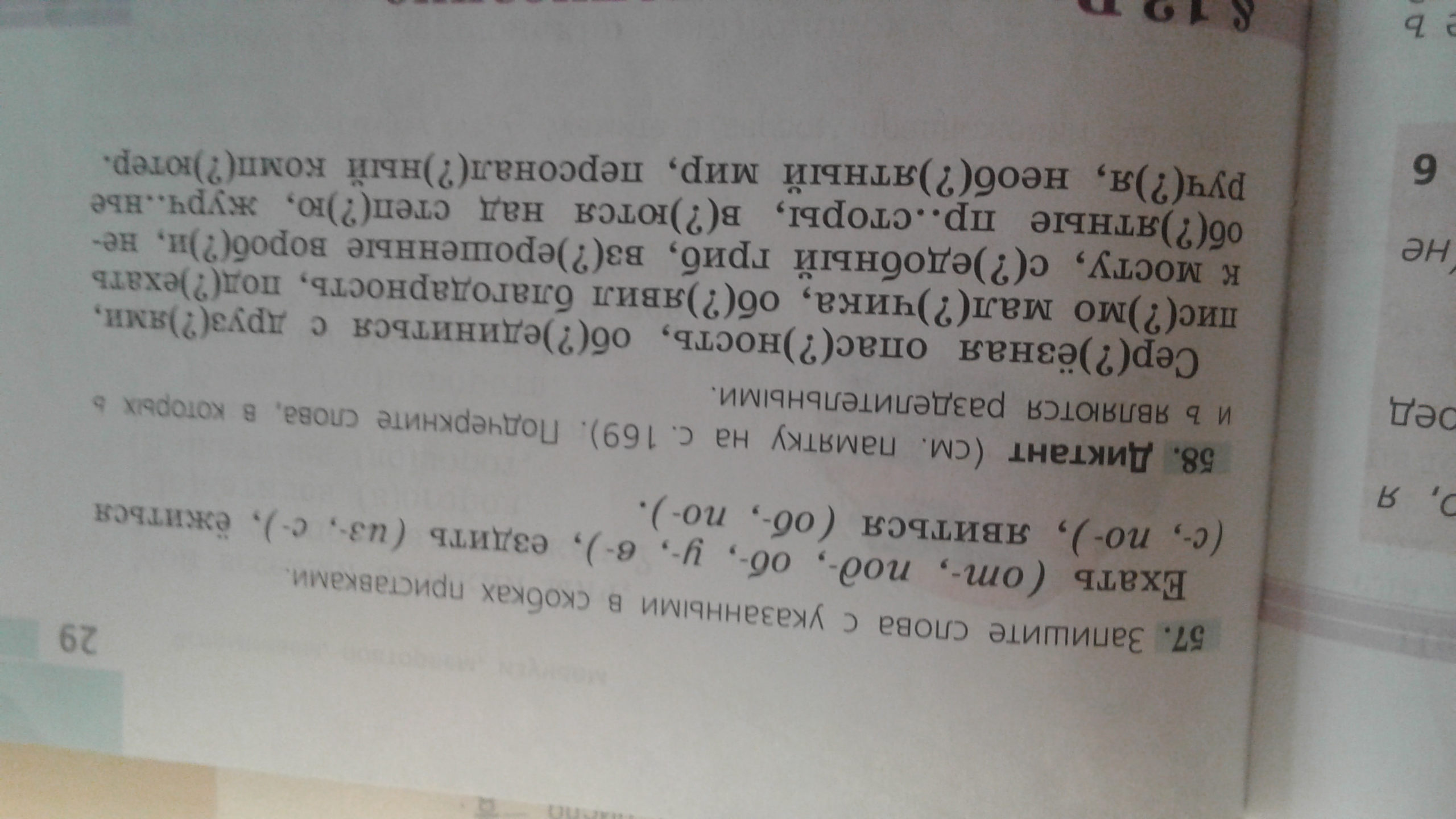 Отъехать, подъехать, объехать,уехать, въехать; изъездить, съездить; съёжиться, поёжиться; объявится, появится.