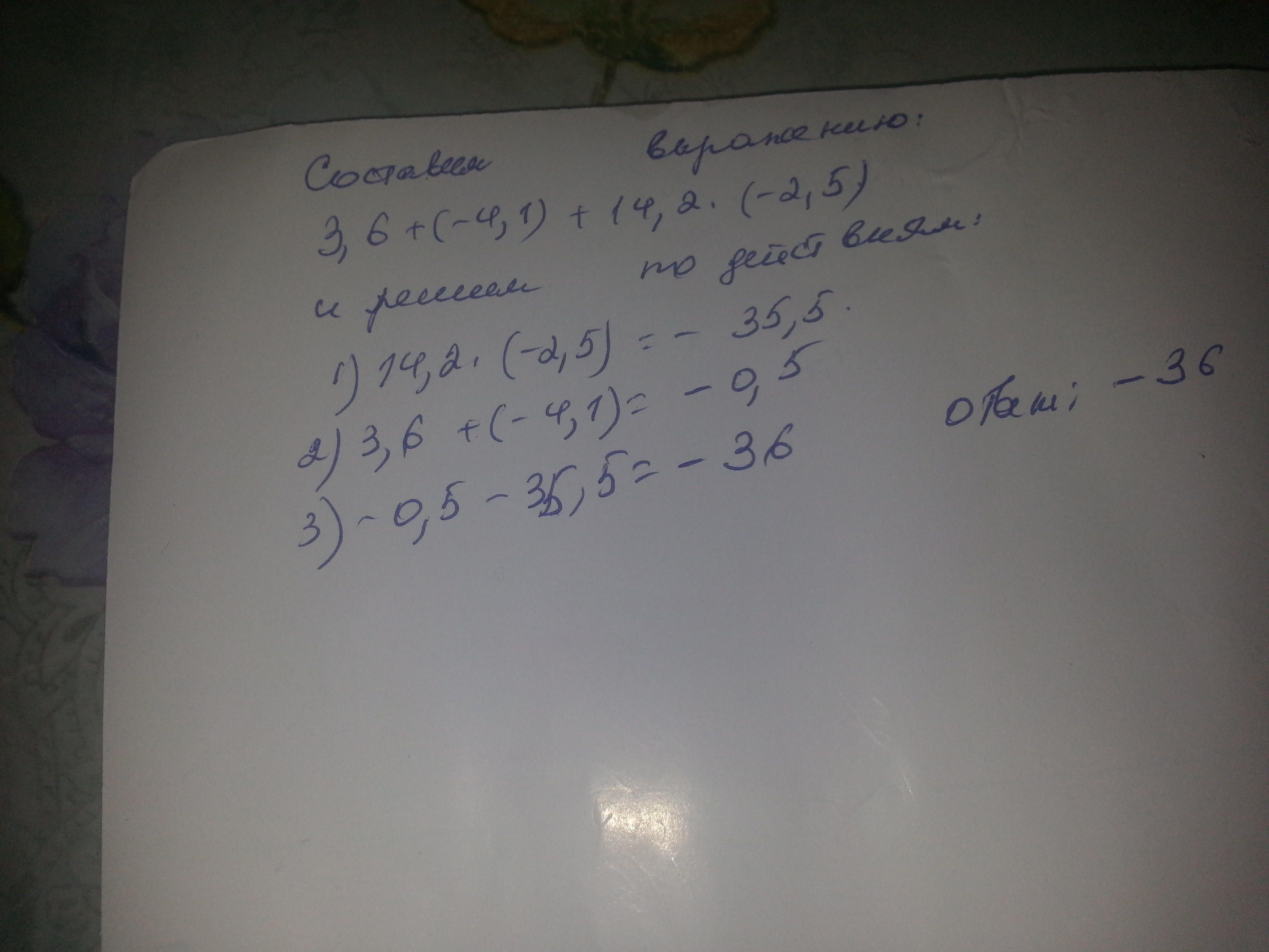(3,6 + (-4,1)) + 14,2·(-2,5) = -36.