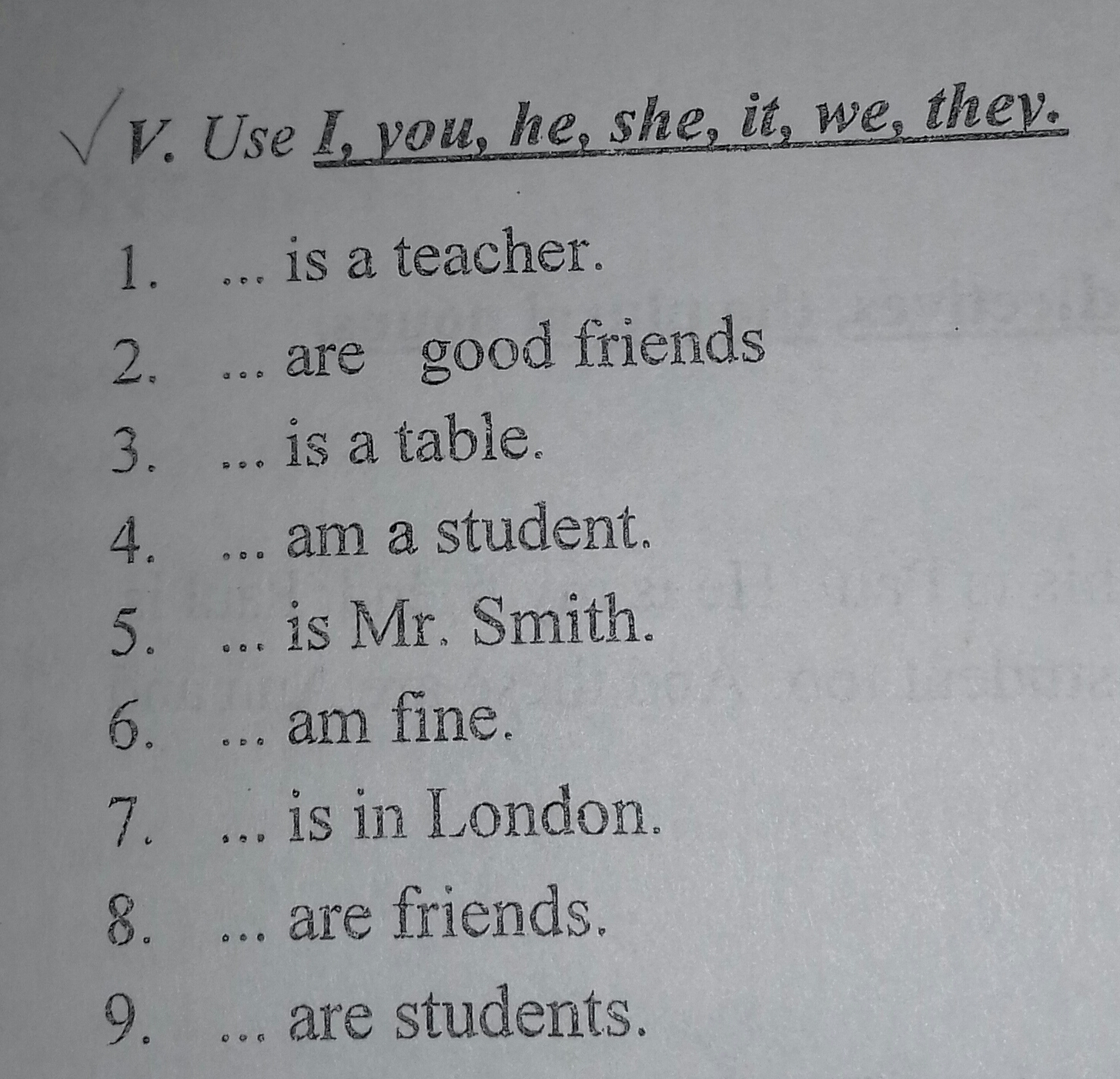 1.she 2. We 3.it 4.i 5. He 6.i 7.she 8.they 9.we