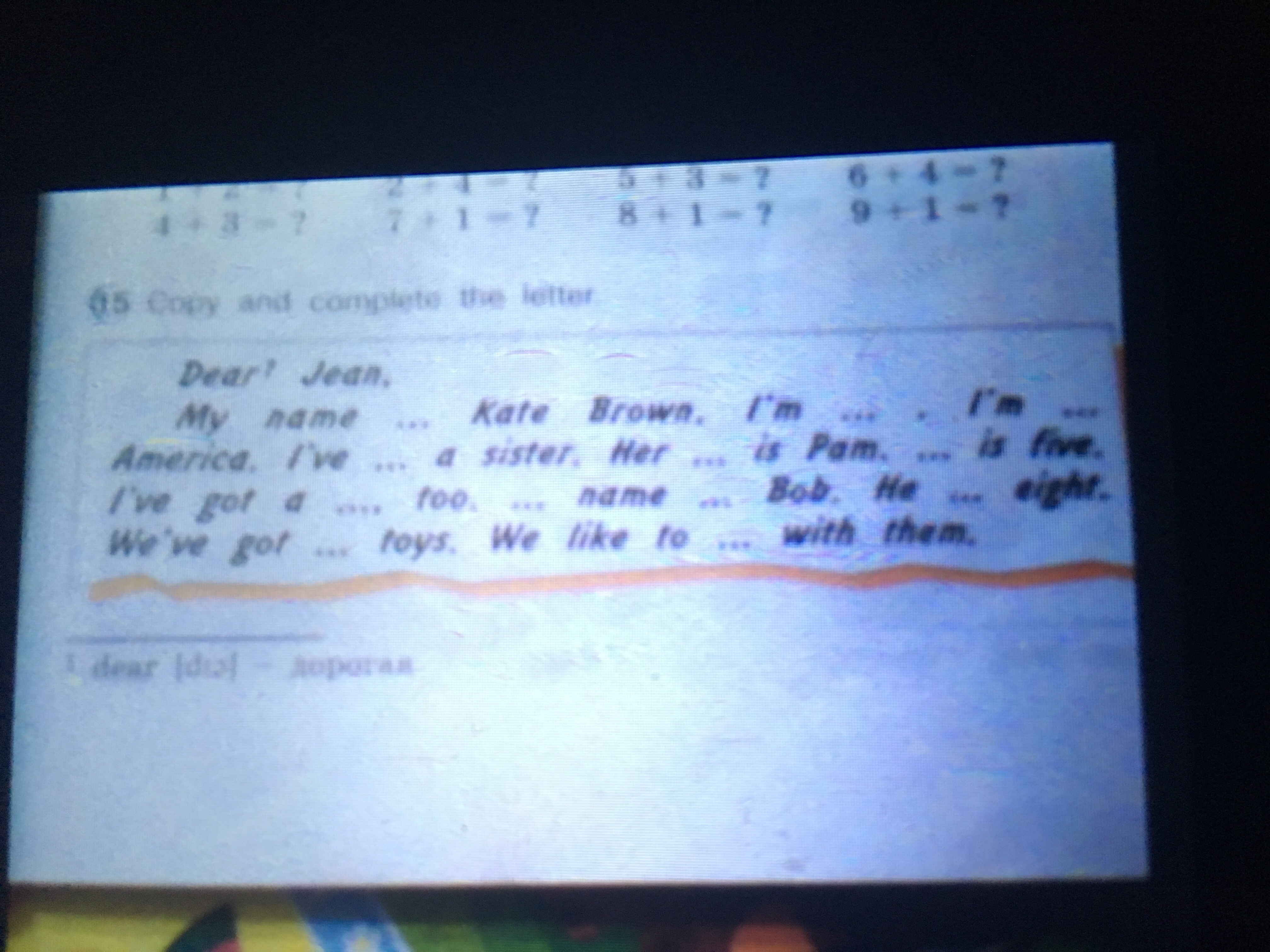 My name is Kate Brown. I'm твой возраст. I'm from America. I've got a sister. Her name is Pam. She is five. I'v got a brother too. His name is Bob. He is eight. We've got many toys. We like to play with tham.