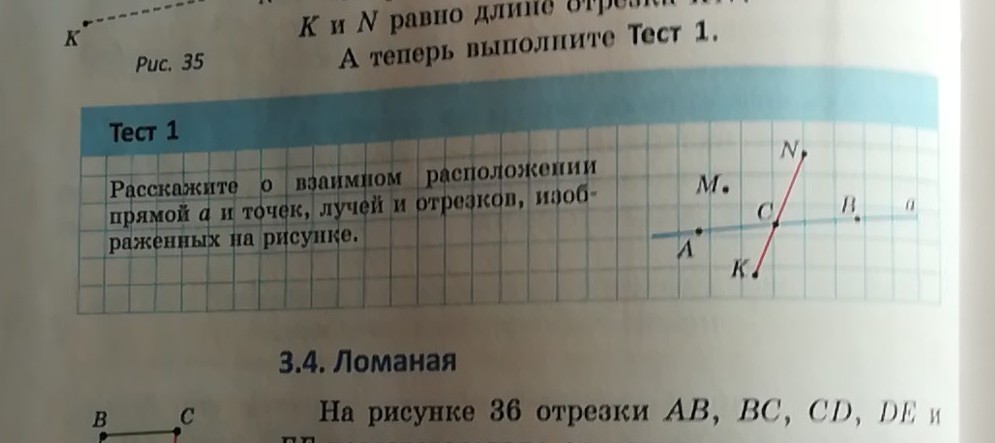 точки А, С и В лежат на данной прямой, точки М и N лежат в верхней полуплоскости относительно прямой а, а точка К лежит в нижней полуплоскости относительно прямой а, отрезок КN пересекает прямую а, а отрезки АС и ВС лежат на ней