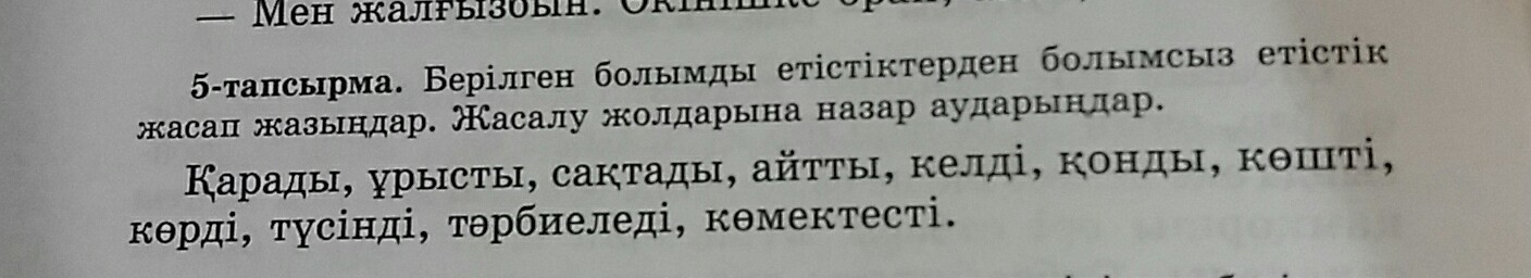 Берілген болымды етістіктерден болымсыз етістік жасап жазындар. Жасалу жолдарына назар аударыңдар