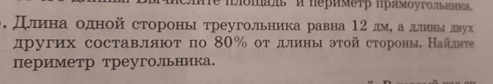 12 * 0,8(80%) = 9.6 дм - длина двух других сторон.