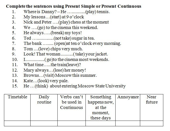 В таблицу надо написать номера предложений, подходящие под объяснения, типа Повседневная рутина.