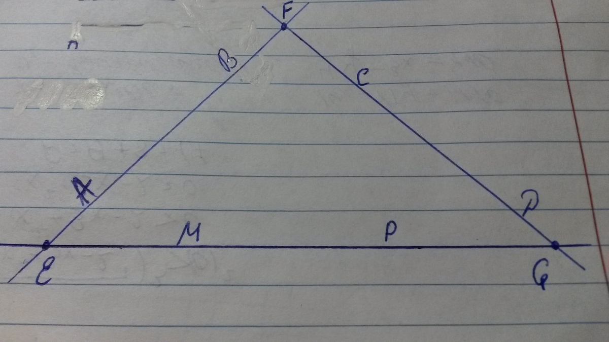 Продлить все прямые до пересечения, и обозначить точки пересечения. Например: E, F, GЧертеж в фото: