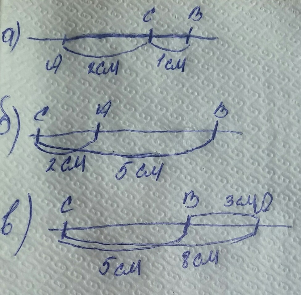 Начертите прямую и отметьте на ней точки A и В, такие, что АВ = 3 см. Отметьте на прямой точку С так, чтобы выполнялось условие: