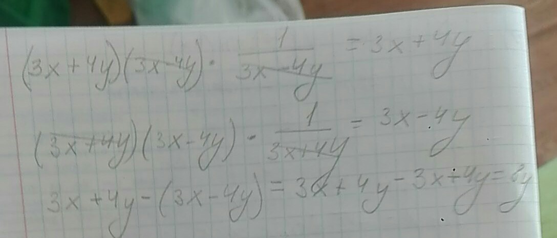 (3х+4у)(3х-4у)*[1/(3х-4у)]=3х+4у