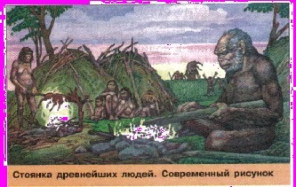 В древние времена на костре женщины приготавливали пищу,добытыю ранее мужчинами.Люди жили в пещерах,ходили без одежды,прикрывая некоторые участки тела лапухами.