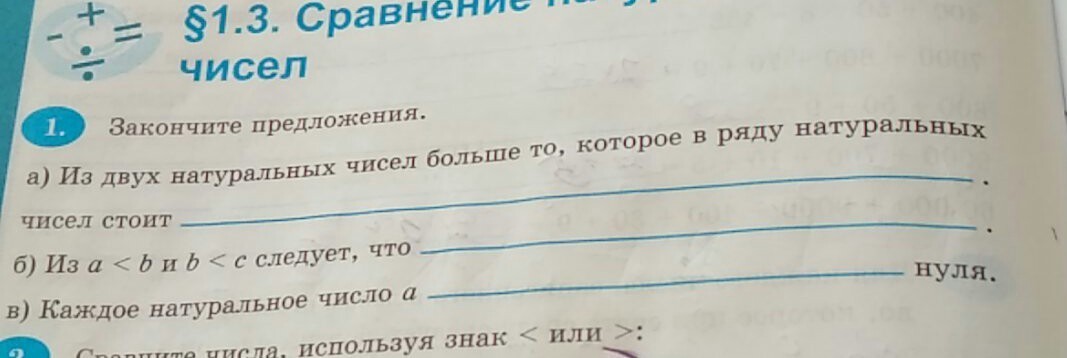 из двух натуральных чисел больше то, которое в ряду натуральных чисел стоит справа