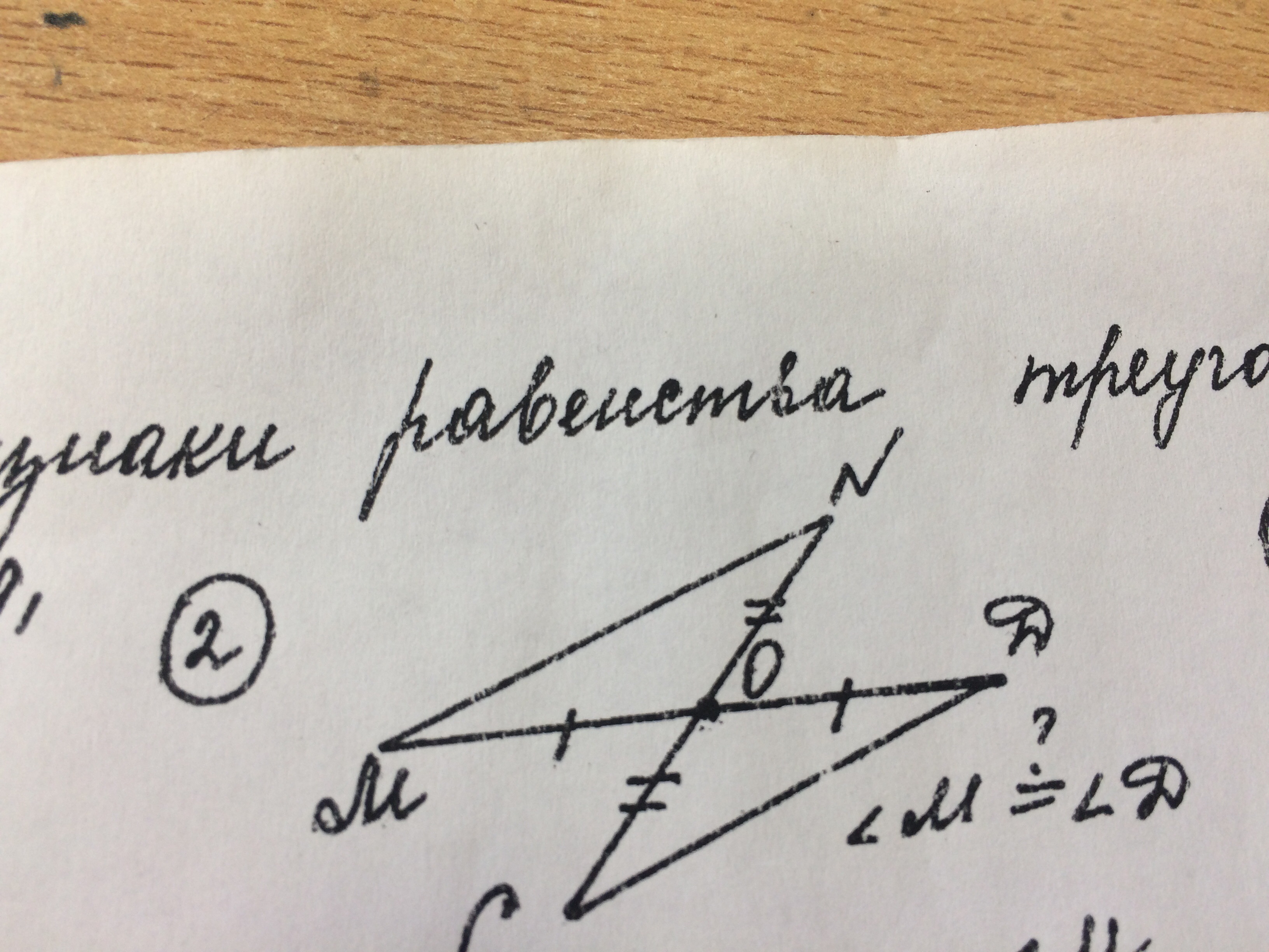 2. угол МОN =углу СОD как вертикальные, следовательно треугольник МОN= треугольнику СОD по двум сторонам и углу между ними