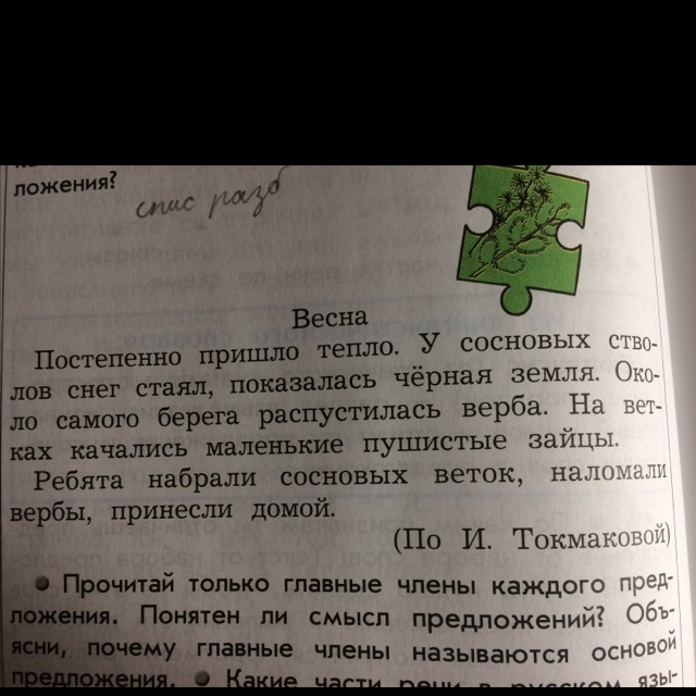 2 сущ) тепло . снег . верба. ребята . зайцы .
