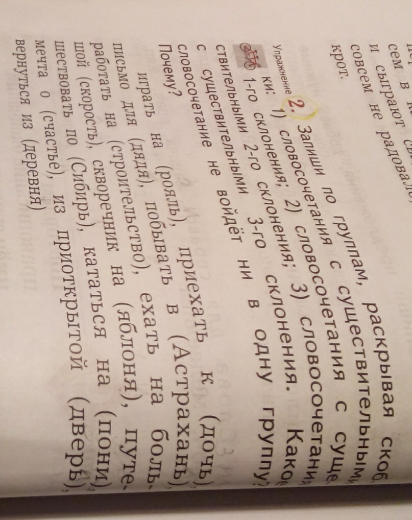 запиши по группам раскрывая скобки 1 словосочетания с существительными 1 склонения 2 словосочетания существительное 2 склонения 3 сочетание существительных 3 склонения какое словосочетание не войдет ни в одну группу Почему