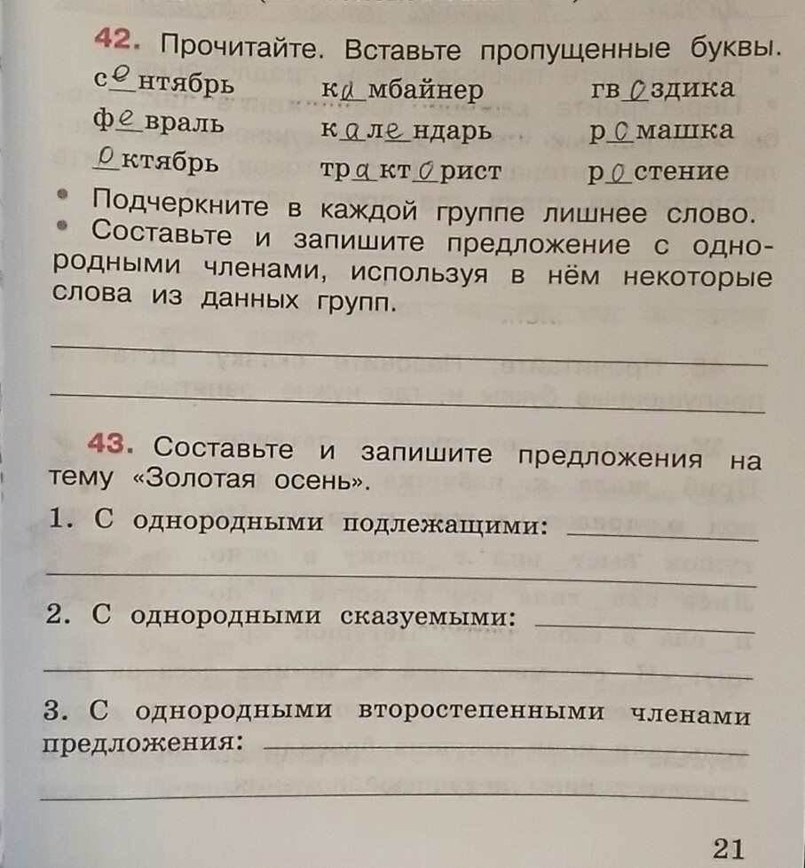 первая группа слов слово февраль вторая группа слов слово календарь третья группа слов слово ростение, предложения: был сентябрь настал октябрь, сешодня я видел тракториста и комбайн,у меня на даче ростут ромашка и гвоздика