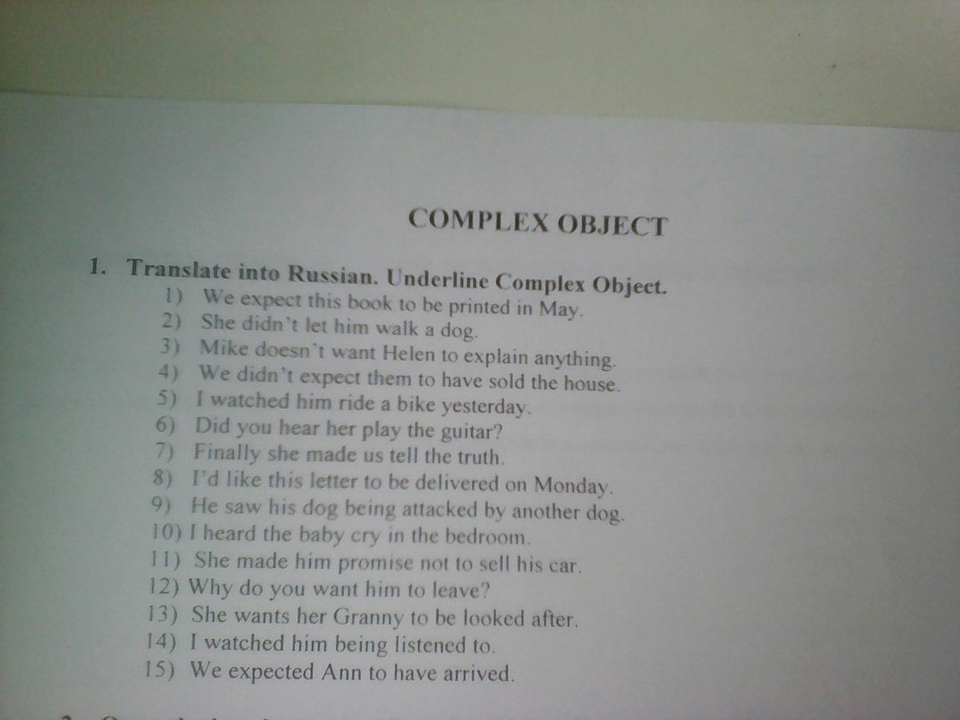 1) Я хочу, чтобы он был моим другом. 2) Они хотели бы (мы) изучать английский язык. 3) Мы ожидаем, что они прибудут в 18:00. 4) Она не хочет (сер-дочь) жить во Франции. 5) Я бы хотел, чтобы она предложила им свою помощь. 6) Она услышала (он), открыв дверь. 7) Том ожидает (II. Писать письма каждую неделю 3.1). Мы ожидаем, что он подпишет контракт в понедельник. 2) Он хочет, чтобы врач был отправлен за 3) Г-н Гарретт хотел бы, чтобы дом был отремонтирован летом. Я не слышу, как она поет в данный момент 5) Когда я хочу, чтобы я звонил 6) Мы бы не хотели, чтобы Лиз знала правду 7) Почему бы тебе не хотеть, чтобы они были на вечеринке 8) Я хочу, чтобы мое имя было включено в списке 9) Когда вы хотите, чтобы эта работа была завершена? 10) Она заставила его пообещать остаться с ними. 1) Они ожидали, что письмо было реквизировано.