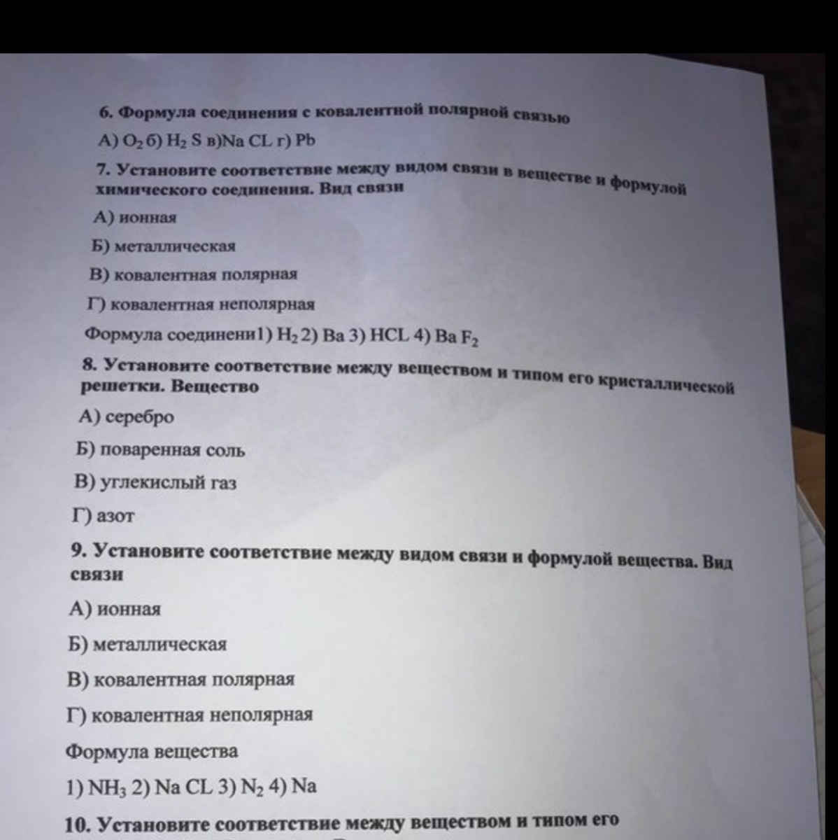 8)а металлическая б ионная в ковалентная полярная г ковалентная неполярная