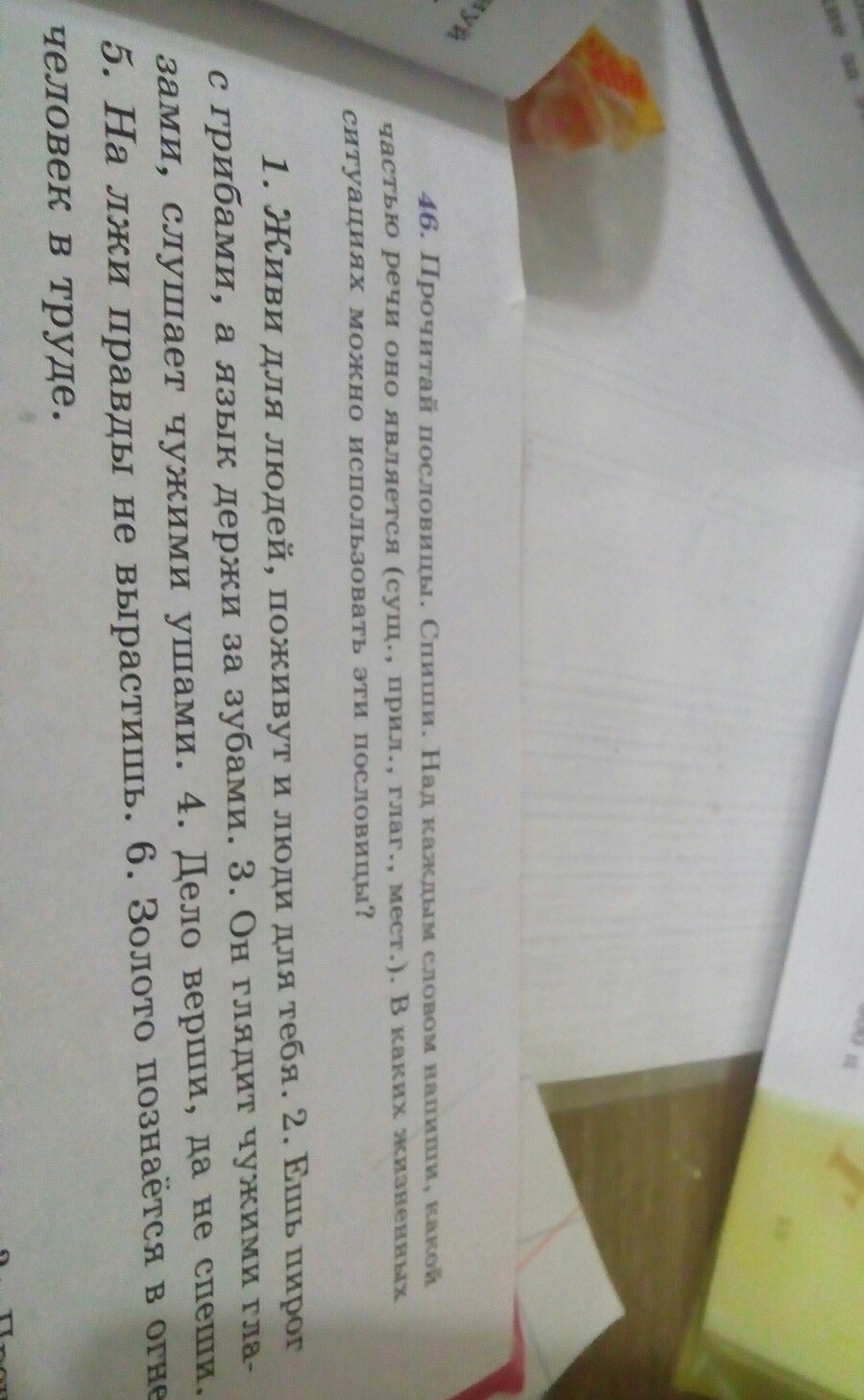 Прочитай пословицы Спиши над каждым словом напиши Какой частью речи они являются существительным прилагательным и глаголом или местоимение в какихтжызненых ституцыях можноможно иссаользывать эти пословицы