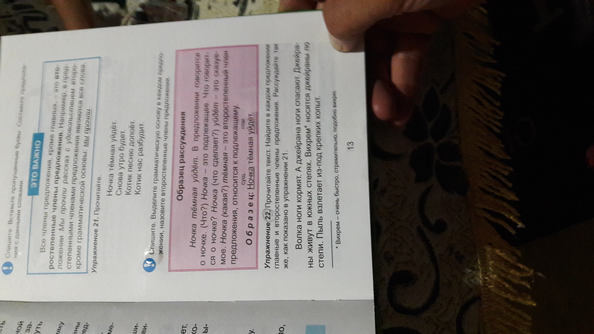 2.А джейрана ноги спасают. В предложении говорится ногах.(Что)-ноги-это подлежащие.Что говорится о ногах?Ноги что делают?-спасают-это сказуемое. Спасают (кого?) джейрана-это второстепенный член относится к подлежащему.