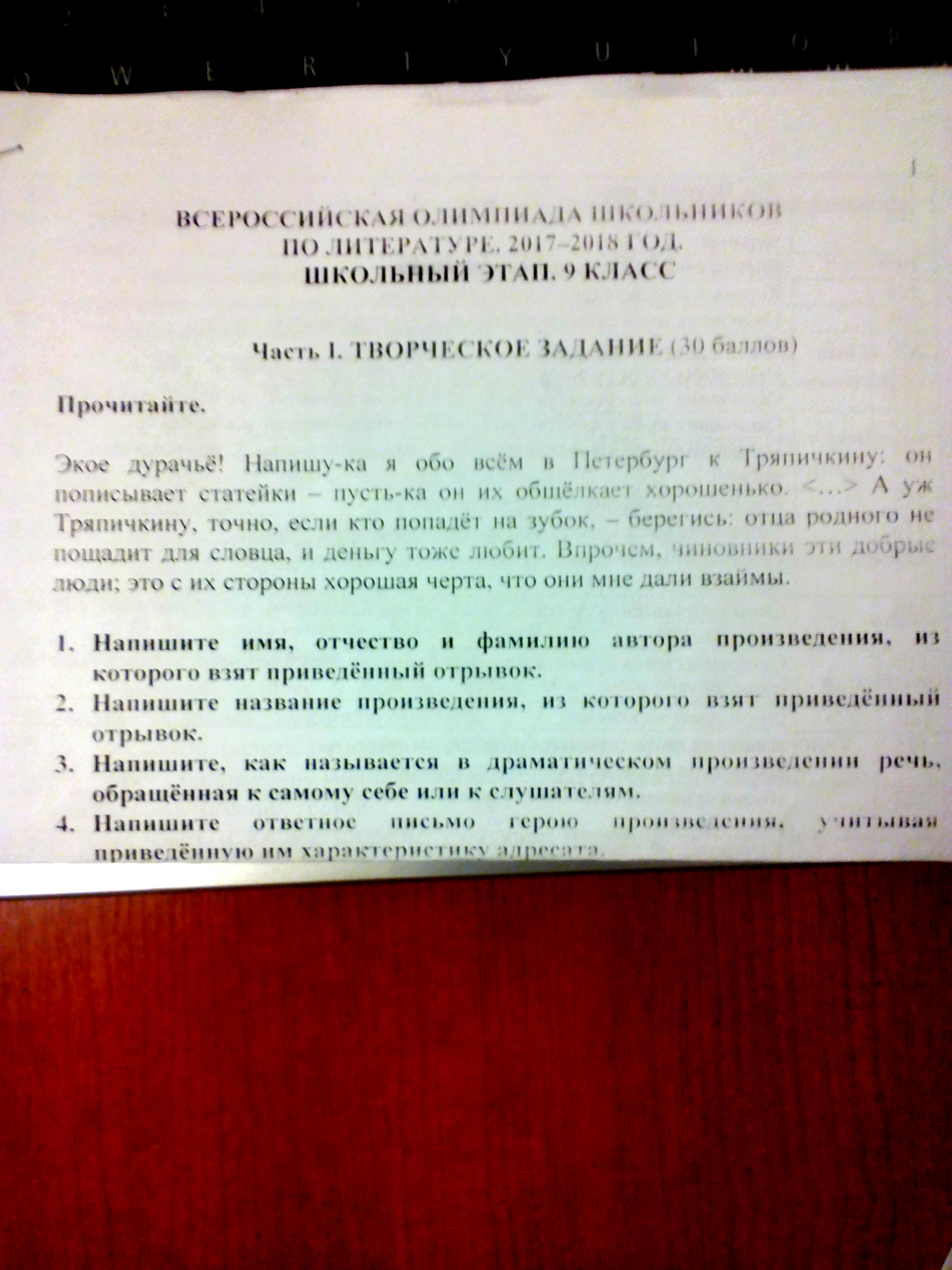 Помогите! Нужно написать ответное письмо Тряпичкина Хлестакову. Из произведения "Ревизор".Буду очень благодарен!