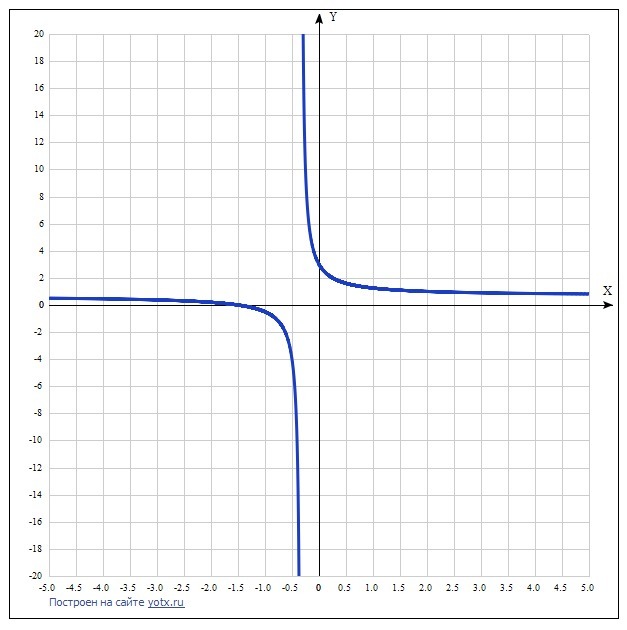 4) Анализ на экстремумы и точки перегиба для данной функции не производим, так как они отсутствуют - функция является гиперболой.