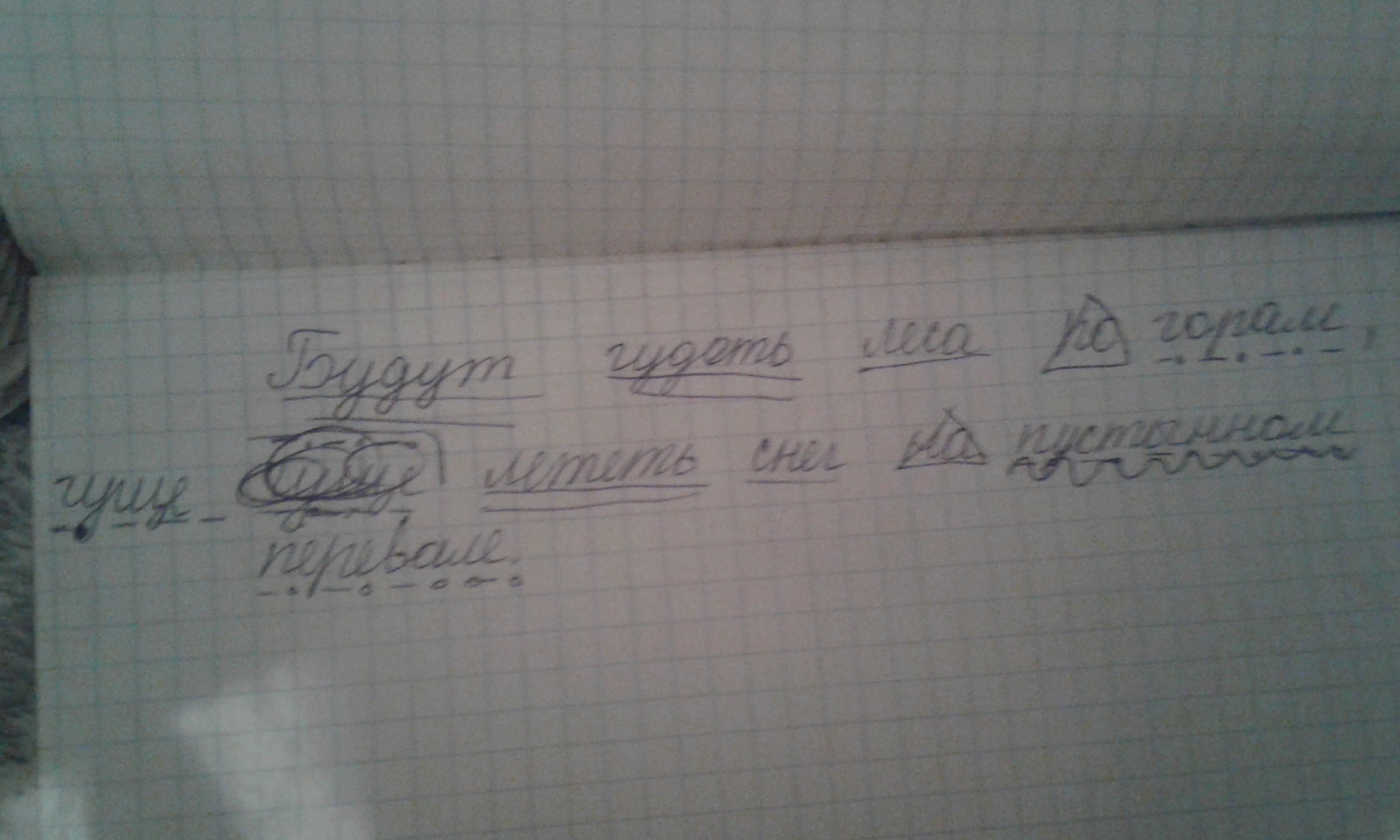 Нужен синтаксический разбор предложения. Будут гудеть леса по горам, гуще лететь снег на пустынном перевале.