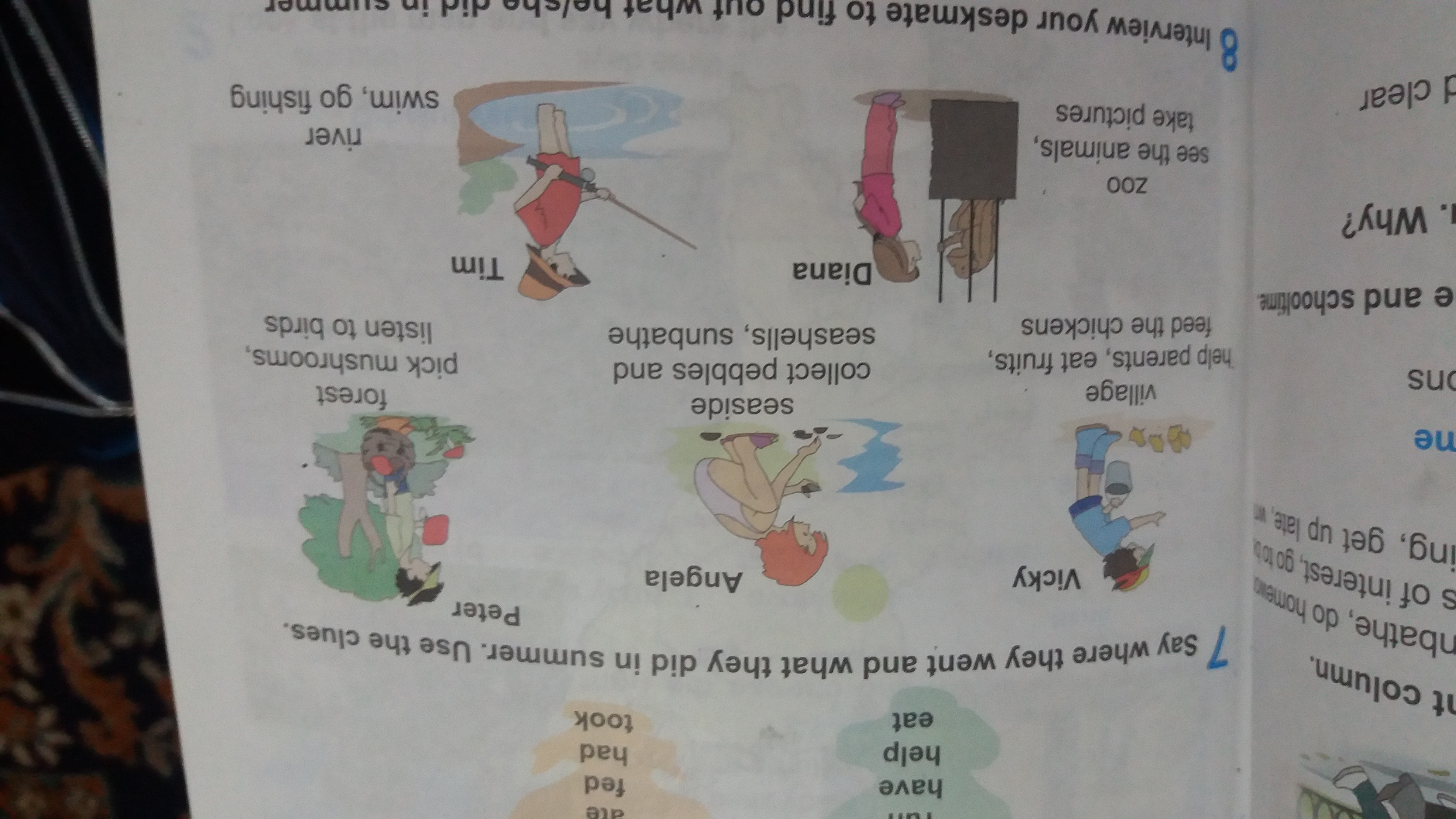 Vicky went to the villege and she helped parents,ate fruits,fed the chickens