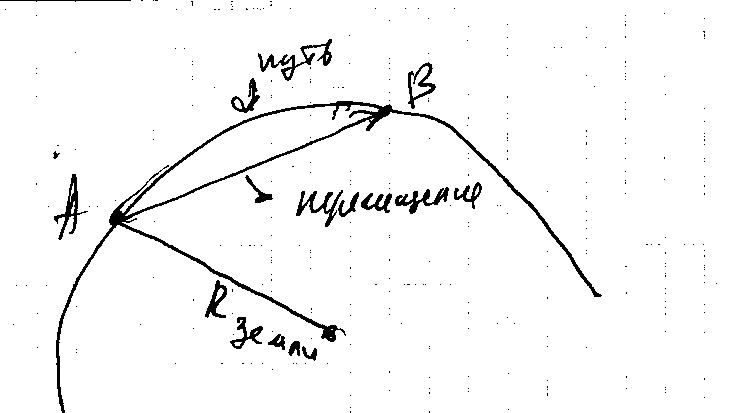 Если считать, что трасса идеально ровная, без поворотом, ям, колдобин, - то определяются и путь и скорость. Но где Вы видели такую дорогу? А если учесть шарообразность Земли (рисунок) то о перемещении придется забыть вовсе, не роет же автобус тоннель, что бы двигается прямолинейно, он движется по поверхности шара.