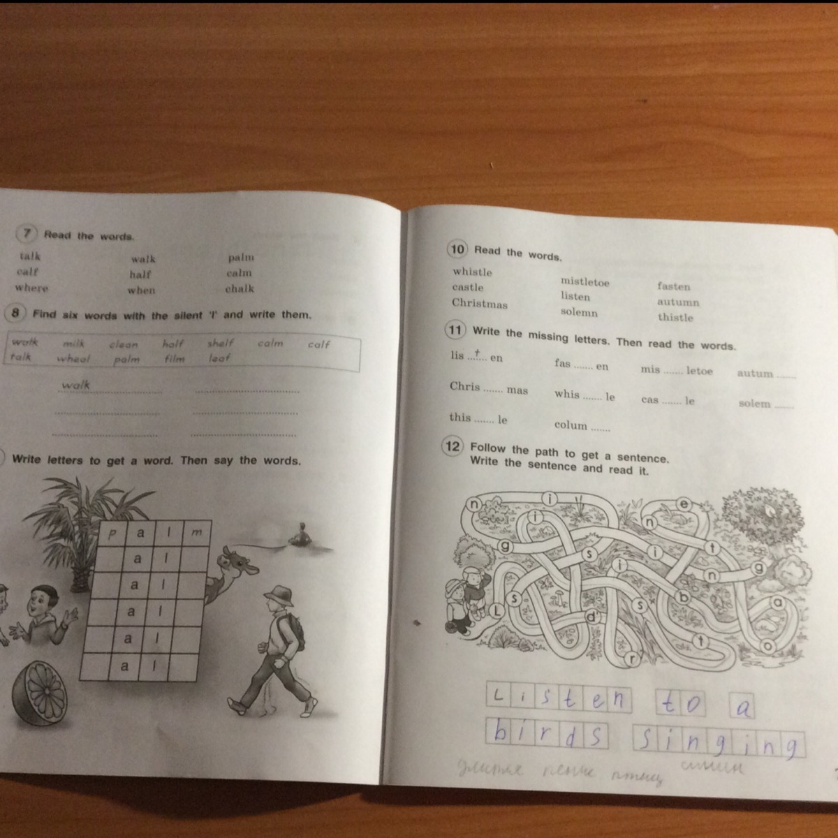 9. Palm, calm, half, calf, talk, последнее слово не знаю