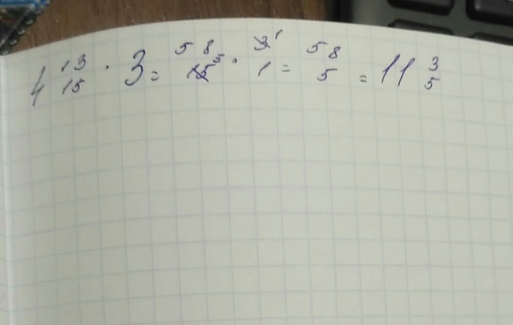 (4цел. 13/15 переводим в неправильную дробь)73/15×3цел.=73/15×3/1=219/15=14,6