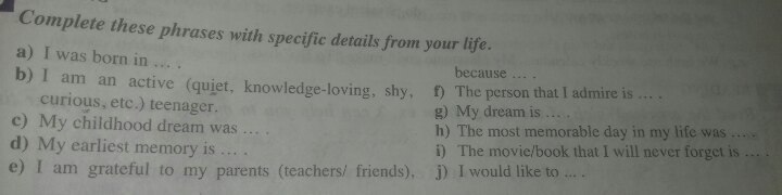 Сопоставь эти предложения со своей жизнью, Т.есть: