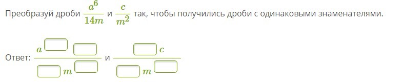 2) a^6*m / 14m^2 и 14*c / 14m^2
