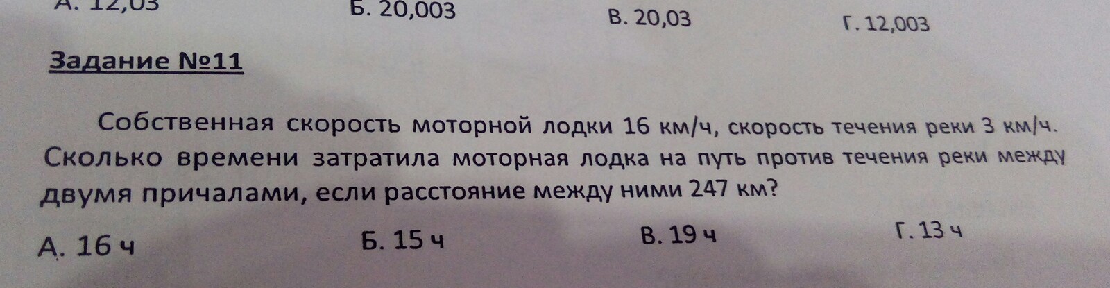 собственная Скорость моторной лодки 16 км ч скорость течения реки 3 км ч Сколько времени затратит моторная лодка на путь противоположного течению реки между двумя причалами если расстояние между ними 247 км